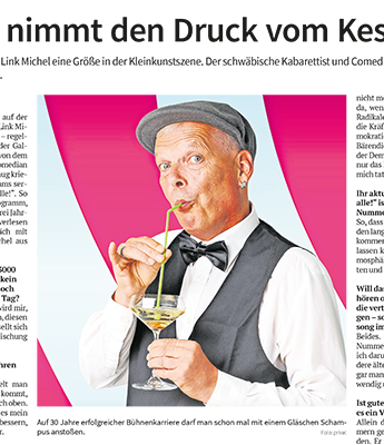 Und das Publikum kann von dem schwäbischen Kabarettisten und Comedian aus dem Neuffener Täle gar nicht genug kriegen. Zur Feier seines Bühnenjubiläums serviert Link Michel „Schampus für alle!". So nennt sich sein aktuelles Bühnenprogramm, für das er die besten Nummern aus drei Jahrzehnten frisch aufpoliert hat – handverlesen und gnadenlos witzig. Im Gespräch mit unserer Zeitung plaudert Link Michel aus dem Nähkästchen.